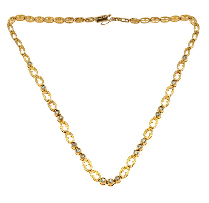 in oro giallo composto da maglie ovali alternate a diamanti taglio brillante per totali ct 0,55 ca