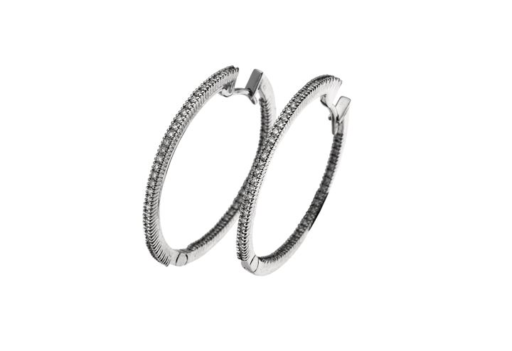 COPPIA DI ORECCHINI Peso gr 7,1 in oro bianco, a cerchio, con diamanti taglio...