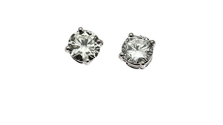 in oro bianco, a lobo, con due diamanti taglio brillante per totali ct 1,43, probabile colore H, purezza VVS