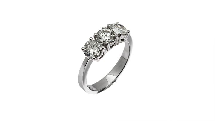 Lot 1450 | ANELLO Peso gr 4,5 Misura 13 in oro bianco, modello trilogy, con tre diamanti...