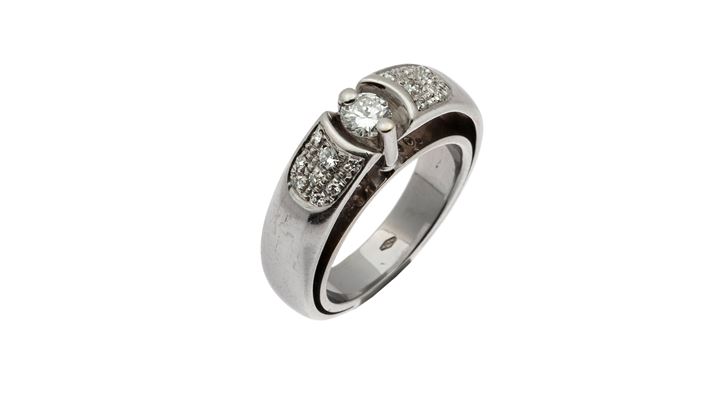 Lot 1473 | ANELLO Peso gr 12,3 Misura 14 in oro bianco con al centro diamante solitario...