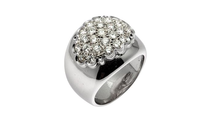 in oro bianco, a fascia, con parte centrale in diamanti taglio brillante per totali ct 1,70 ca, probabile colore G-H, purezza IF-VVS