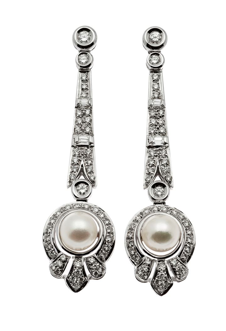 Lot 1477 | COPPIA DI ORECCHINI Peso gr 13,3 pendenti in oro bianco, in stile Déco, con...