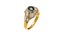 in oro giallo con al centro zaffiro taglio ovale di ct 0,60 ca e diamanti taglio trapezio e fantasia per totali ct 1,50 ca