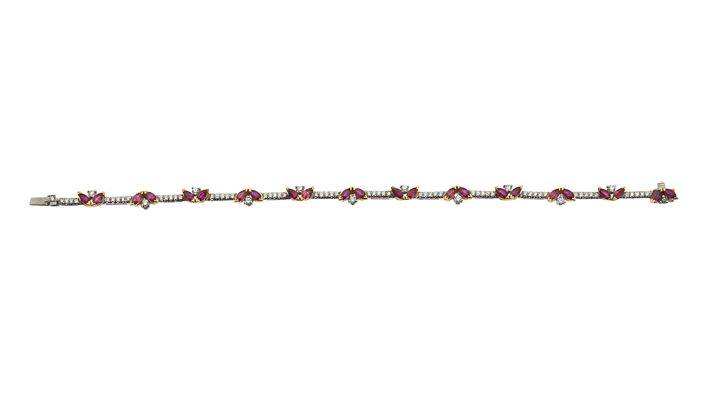 in oro bianco e giallo con rubini taglio navette per complessivi ct 3,50 ca e diamanti taglio brillante per complessivi ct 1,0 ca