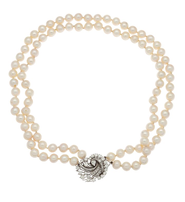 Lot 1557 | COLLANA Lunghezza cm 45 composta da due fili di perle giapponesi del diam di...