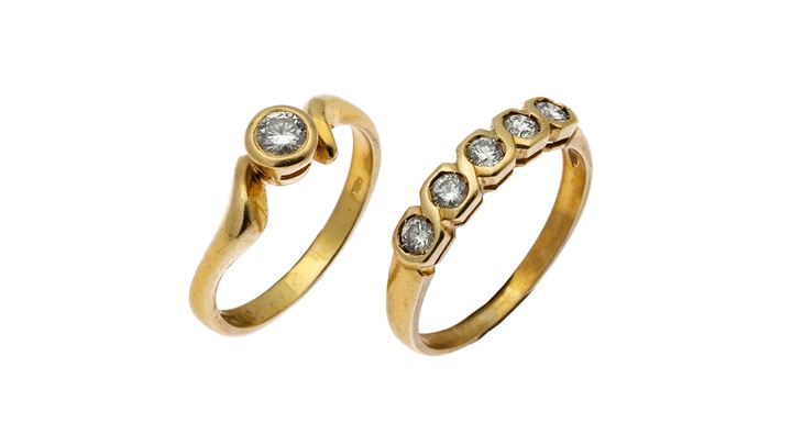 Lot 1561 | LOTTO DI DUE ANELLI in oro giallo: - mezza fede con cinque diamanti taglio...