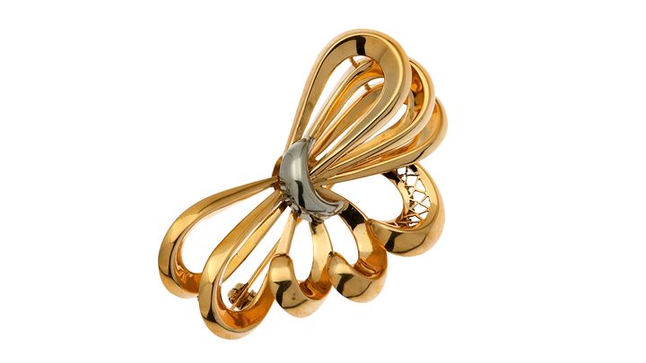 in oro rosa e bianco, anni '40, a forma di fiocco