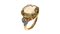 in oro giallo con quarzo citrino sfaccettato taglio rotondo ed ai lati due cerchi in diamanti taglio brillante per totali ct 0,20 ca