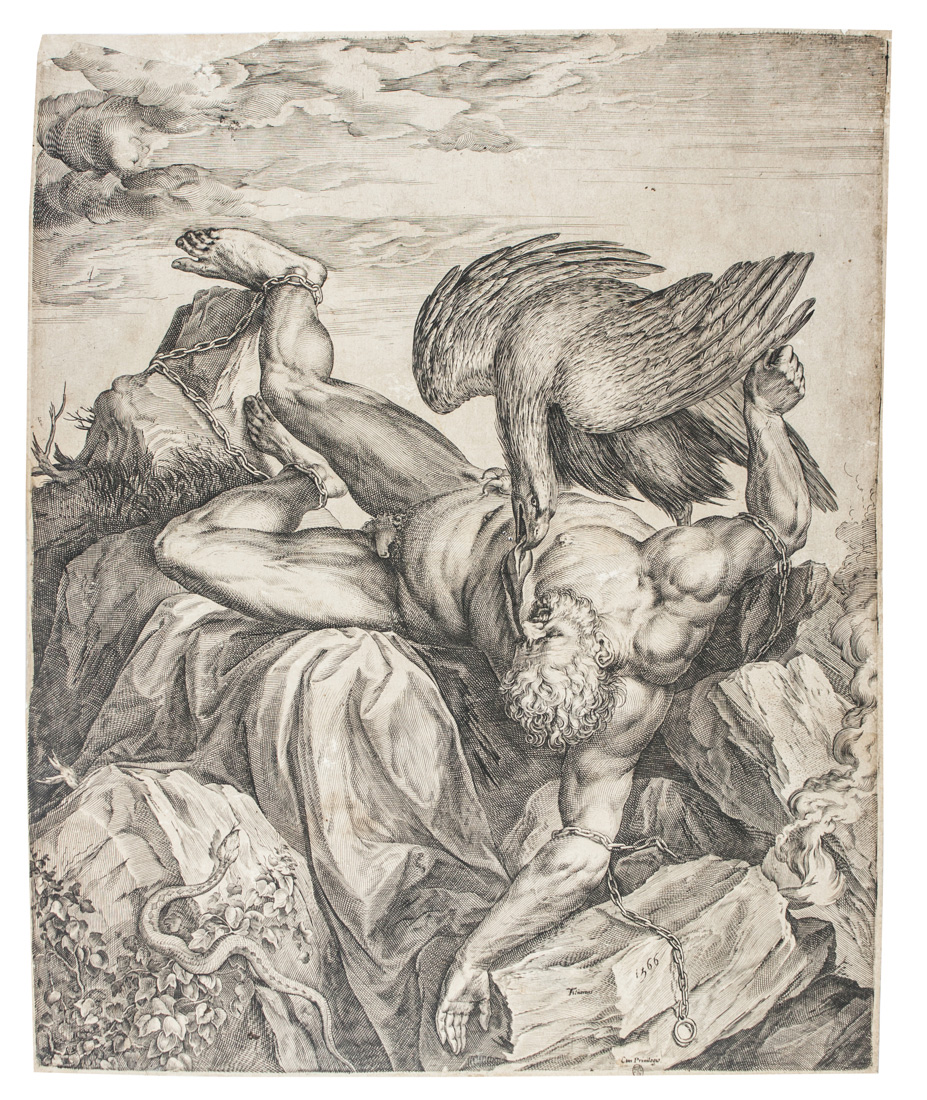 Cornelis Cort Prometeo.1566Bulino. mm 385x314. Foglio: mm 390x318. Mauroner,...