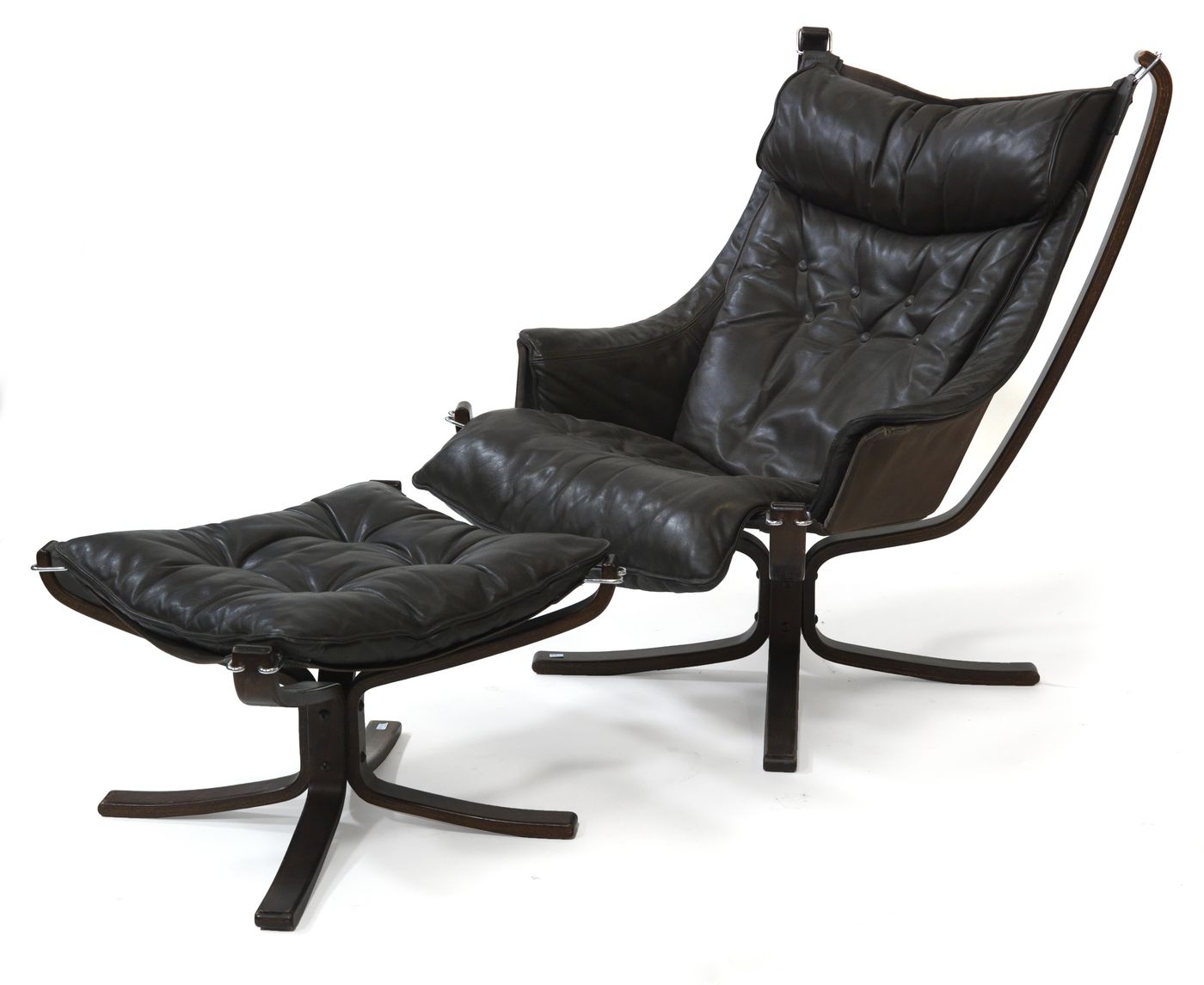 POLTRONA Poltrona con poggiapiedi Struttura in legno di faggio e seduta avvolgente sospesa. in pelle marrone trapuntata capitonné. Prod. Poltrona Frau 1975 circa. rispettivamente cm 100x75x88 e 38x60,5x60,5