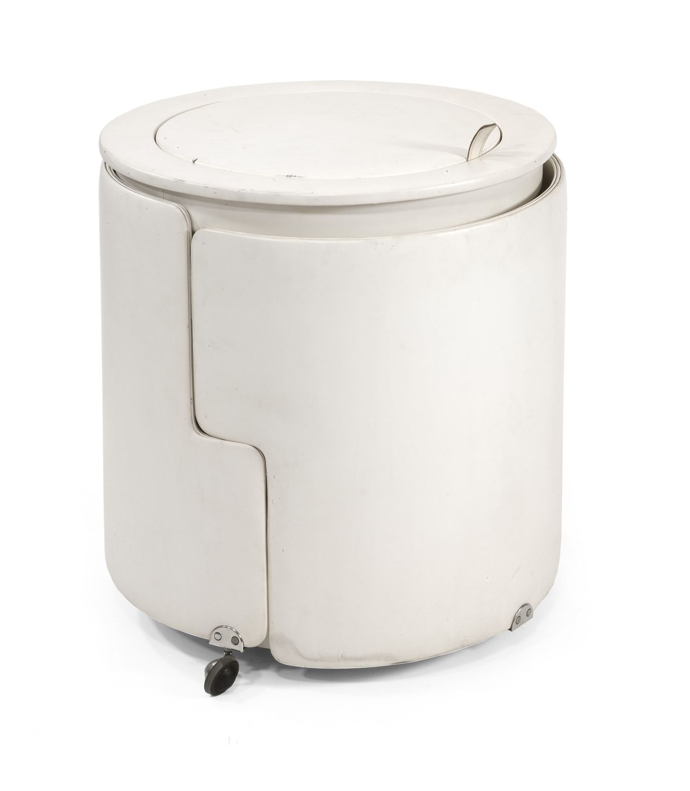 MASSONI LUIGI Dilly Dally Poltroncina-toeletta in compensato curvato rivestito in similpelle. Prod. Poltrona Frau 1968. cm 74x65 Bibl.: Giuliana Gramigna, "Repertorio 1950-1980", Mondadori, 1985, pag. 270.