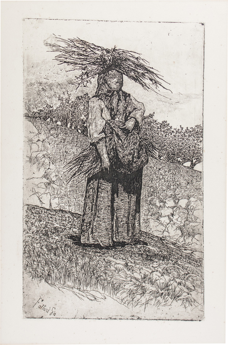 Acquaforte su zinco. mm 355x215. Foglio: mm 495x370. Baboni-Malesci, CLXI. Bonagura, 128. Servolini, 127. Timpanaro, 391. Firmata sulla lastra in basso a sinistra. Lastra conservata presso il Gabinetto Disegni e Stampe degli Uffizi (Inv. 159M). Bellissima impressione su carta avorio ruvida con filigrana "Umbria Italia". In basso a destra si intravede una firma a penna molto sbiadita "Gio. Fattori".