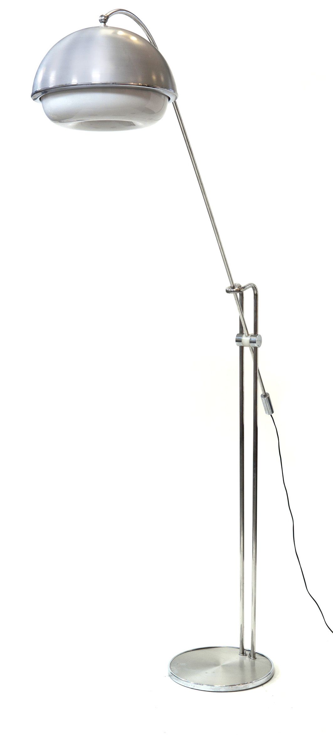 PIANTANA Lampada da terra Metallo cromato e alluminio. Diffusore in plexiglass opalino 1970 circa h cm 220