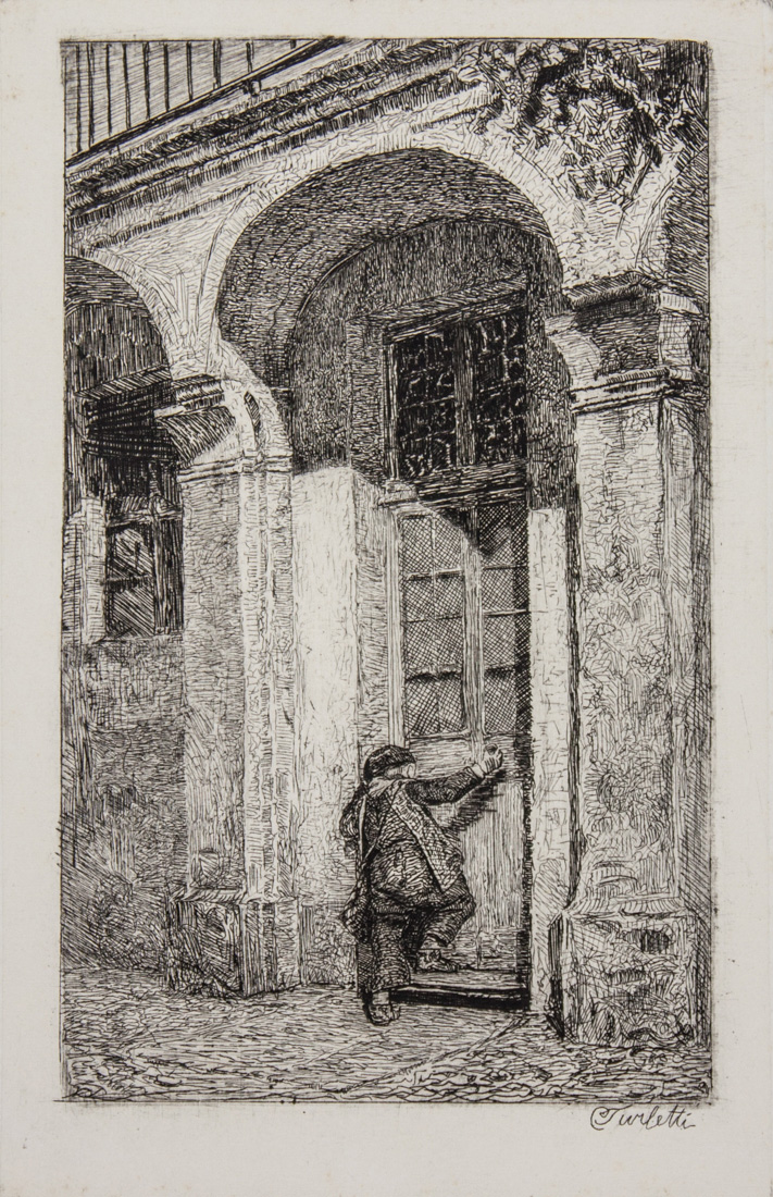 Celestino Turletti Chiuso fuori.1874Acquaforte su velina applicata. mm...