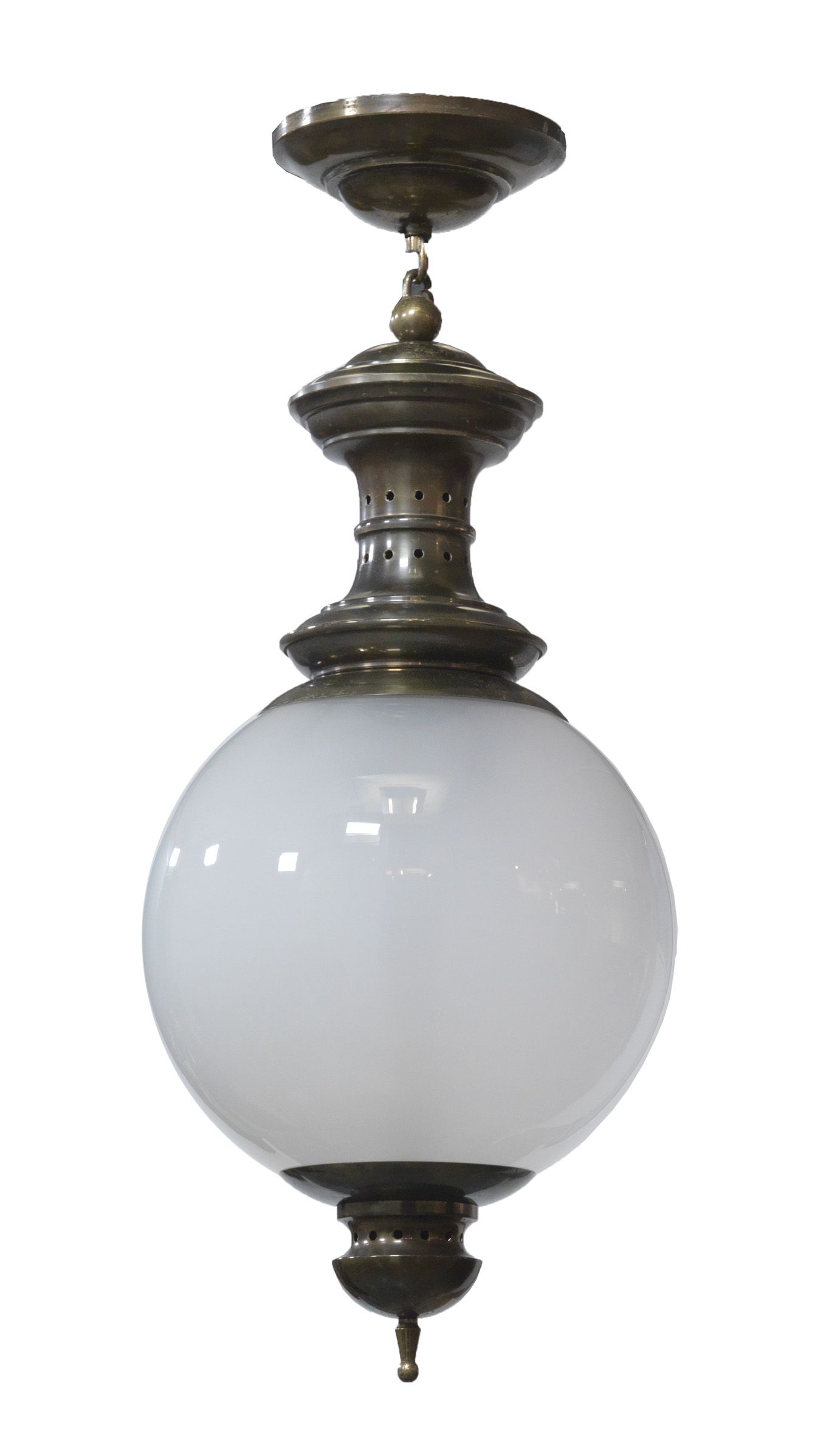 CACCIA DOMINIONI LUIGI Due lampioni in vetro satinato con montatura in ottone. Prod. Azucena 1950 circa. h cm 65 Bibl.: Domus 294 maggio 1954 pag. 17. (foto di casa Caccia)