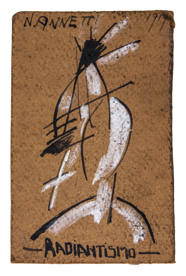Tempera e inchiostro su cartoncino. mm 135x85. Firmato "Nannetti" e datato 1919 in alto, titolato in basso. Pronipote col fratello Nerino del pittore Giovanni Fattori, collaborò fin dagli esordi alla rivista "L'Italia futurista" sia con parole in libertà sia con disegni e caricature. Nel 1919 i due fratelli parteciparono con diversi disegni alla Grande esposizione nazionale futurista a Palazzo Cova a Milano.