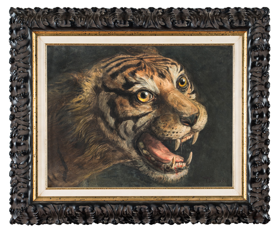 Jan Baptist Tetar van Elven Testa di tigre. Acquerello su carta. mm 330x430....