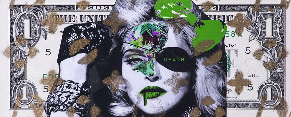 Lot 36 | DEATH NYC (1979) Senza Titolo, 2016 Tecnica mista su banconota americana Cm...