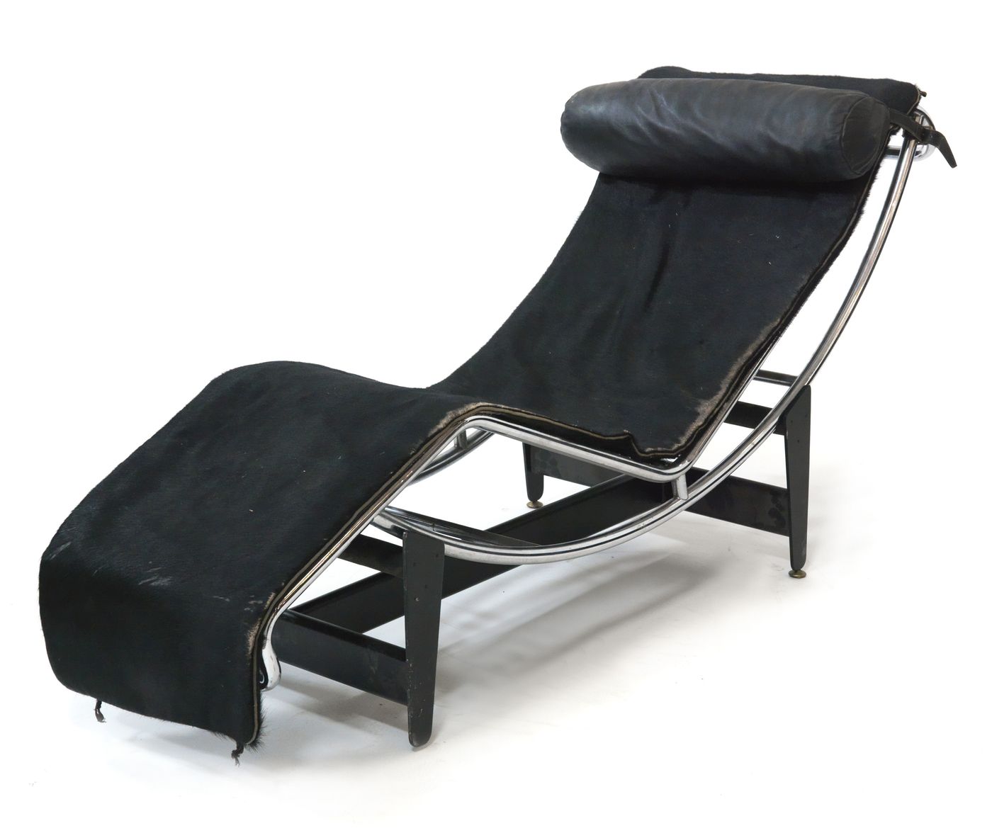 LE CORBUSIER, JANNERET PIERRE, PERRIAND CHARLOTTE Chaise Longue mod. LC4 Base in acciaio verniciato nero opaco, seduta in metallo cromato, rivestimento in cavallino. Prod. Cassina dal 1965. Incisisa la firma "Le Corbusier" LC4 9429 lung. 170x60 Bibl.: G.Bosoni, a cura di, "Made in Cassina", Skira, 2008, pag. 82, 83. Charlotte & Peter Fiell, "1000 Chairs", Taschen 2000, pag. 130,131.