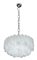 LAMPADARIO Lampadario a quattro ordini concentrici di vetro traparente soffiato in stampo. Supporto in metallo cromato. h cm 88