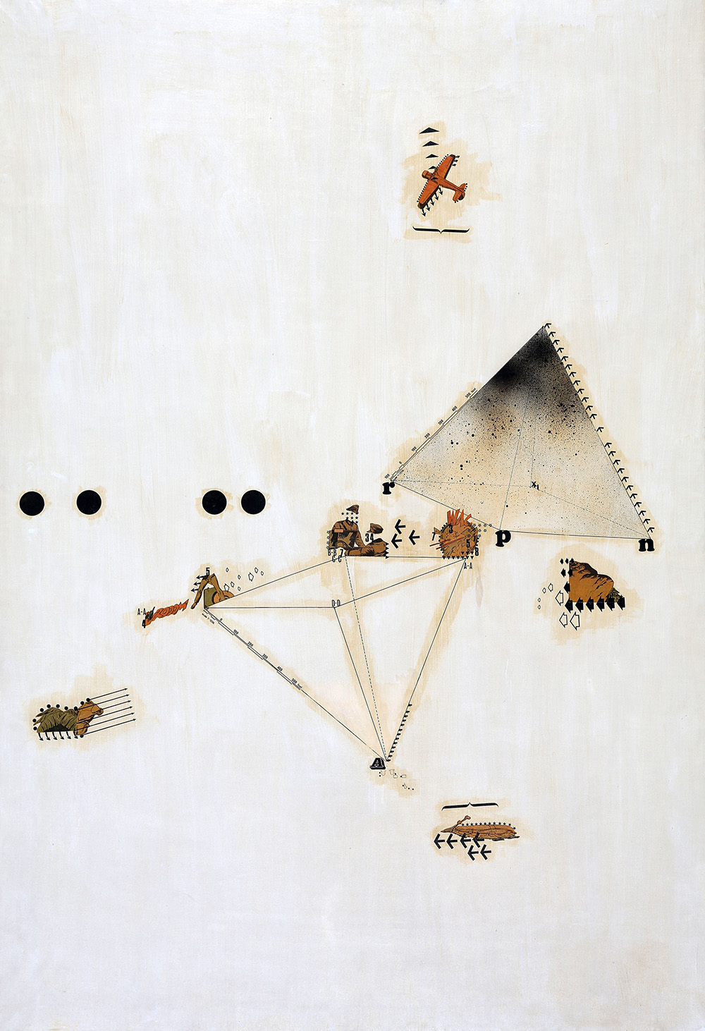GIANNI EMILIO SIMONETTI 1940 Lo spessore ecologico dal punto di vista della coesistenza pacifica, 1969 Tecnica mista su tela, cm. 130 x 90 Firmato e datato sul retro Autentica dell'artista su fotografia ESPOSIZIONI: " Simonetti: paintings ", Galerià Bonino New York, 1970 PUBBLICAZIONI: " Simonetti: paintings ", Galerià Bonino New York, 1970 " The New York Times ", articolo Art: Jewish Museum Retrospective for Artist of 36, 1970 Prov. Collezione Privata