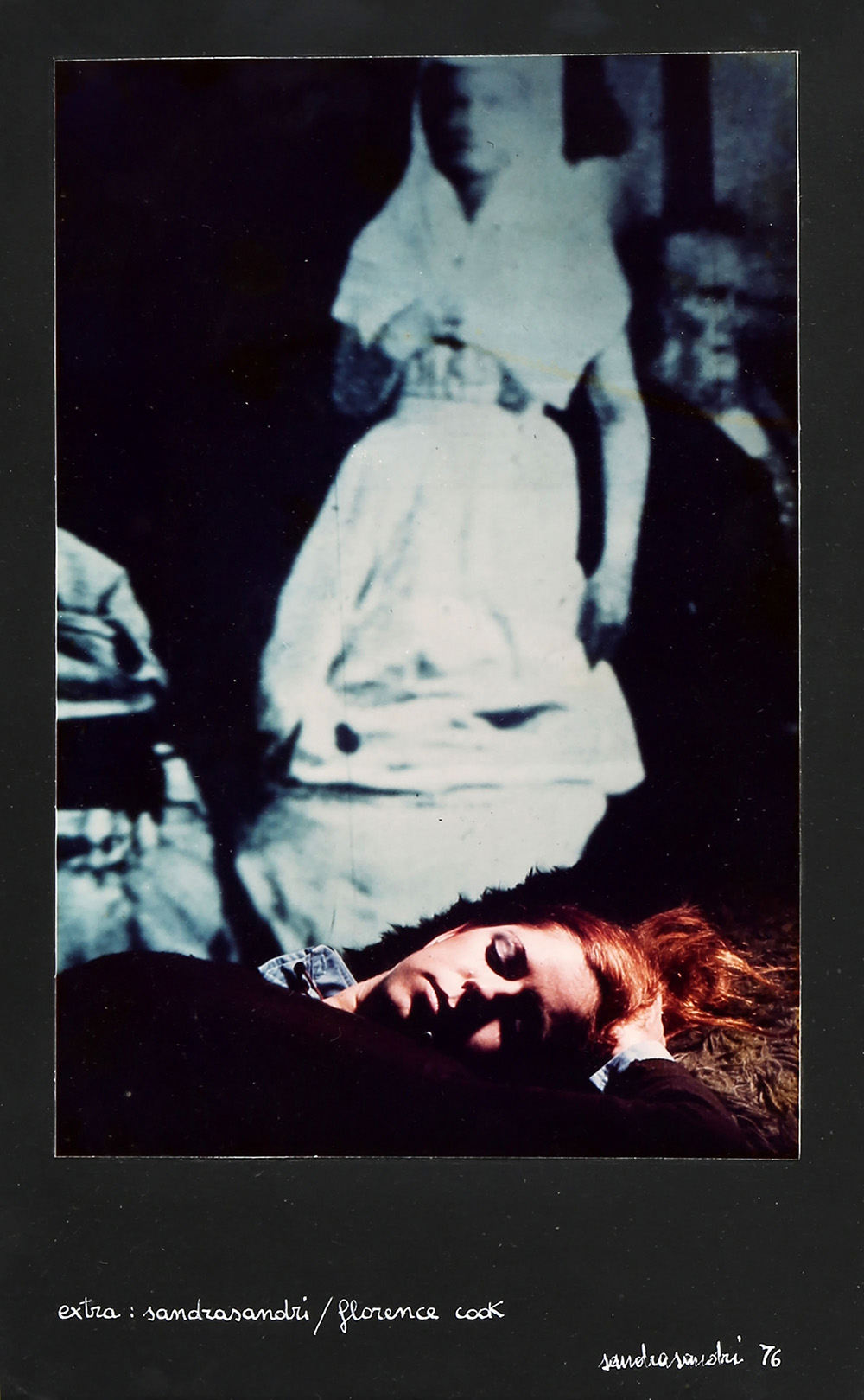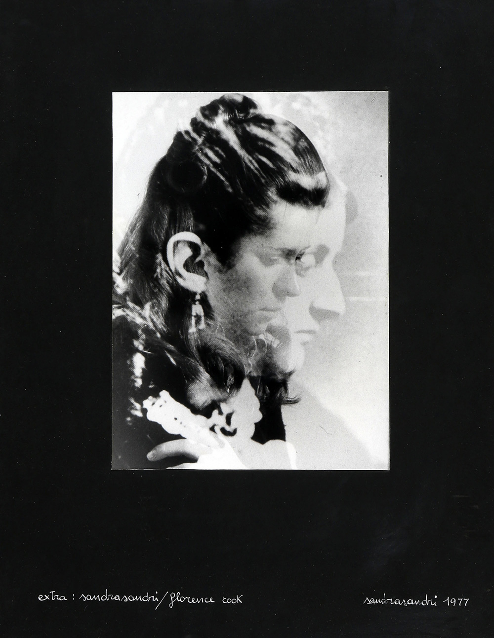 SANDRA SANDRI 1947 LOTTO DI 4 FOTOGRAFIE Extra: sandrasandri/florence cook, 1976 Fotografia a colori, cm. 23,5 x 16 Firmato e datato in basso a destra Etichetta Diagramma/Luciano Inga - Pin Milano sul retro Extra: sandrasandri/florence cook, 1977 Fotografia in bianco e nero, cm. 24 x 17,5 Firmato e datato in basso a destra per conoscenza: ipnosi momenti dell'azione alla galleria diagramma, 1975 Fotografia in bianco e nero, cm. 24,5 x 17,5 Firmato e datato in basso a destra extra: sandrasandri/sospensione/relazione, 1977 Fotografie in bianco e nero, cm. 21,5 x 15 (cadauna) Firmato e datato in basso a destra Timbro dell'artista sul retro Prov. Collezione Privata