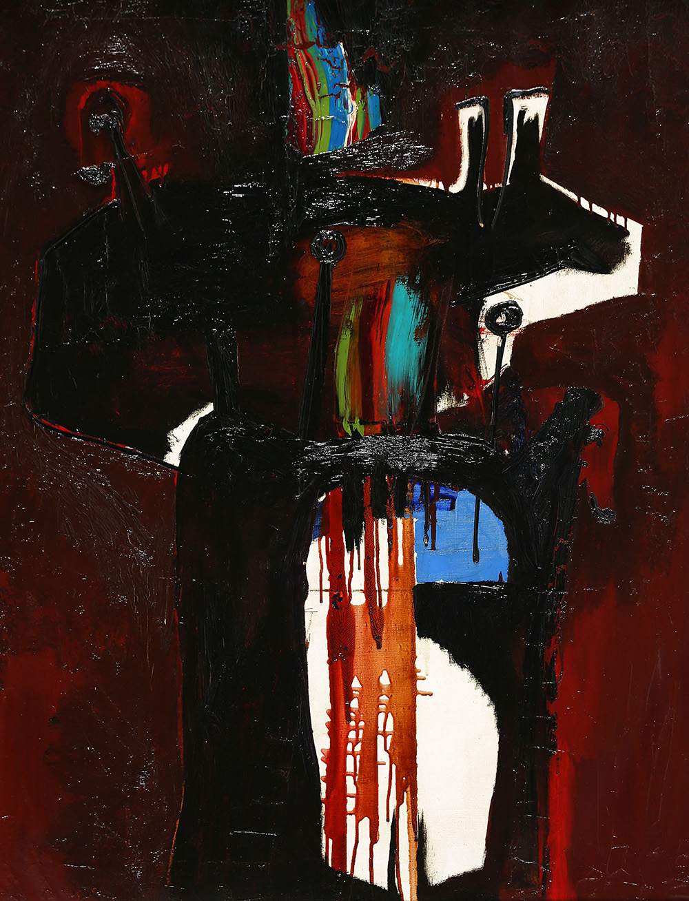 ROBERTO CRIPPA 1921 - 1972 Momento di natura, 1959 Olio su tela, cm. 113 x 89 Firmato e datato sul retro Etichetta Galleria Nanni Bologna sul retro Timbro Galleria Michelangelo Bergamo sul retro Timbro Galleria Pagani Milano sul retro Autentica di Roberto Crippa Junior su fotografia Prov. Collezione Privata
