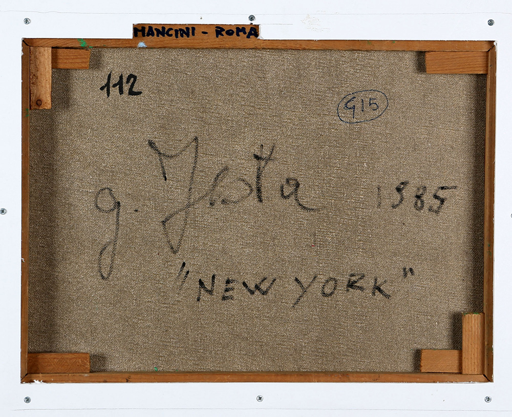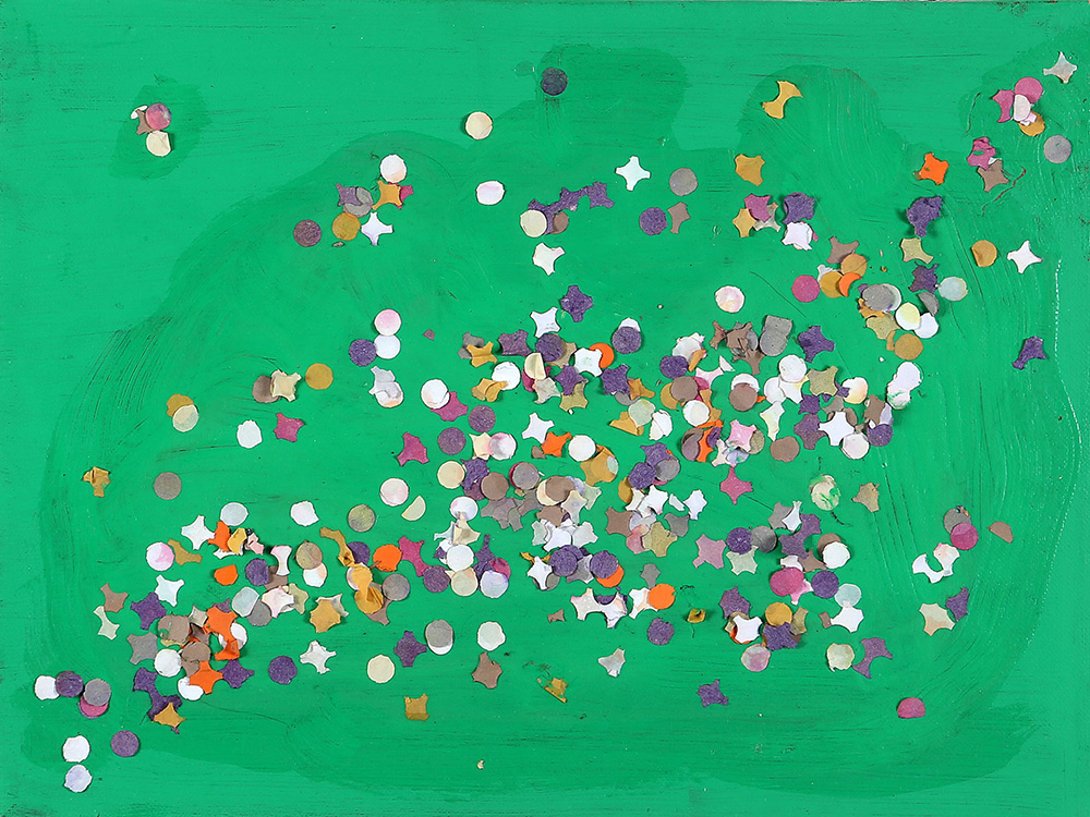 TANO FESTA 1938 - 1988 New york, 1985 Acrilico e coriandoli su tela, cm. 30 x 40 Firmato e datato sul retro Autentica Studio Soligo su fotografia Prov. Collezione Privata