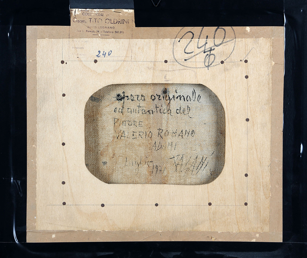 VALERIO ADAMI 1935 Senza titolo, 1960 Tecnica mista ed olio su carta telata, cm. 24 x 30 Firmato e datato sul retro Autentica dell'artista su fotografia Timbro Collezione Oldrini Legnano sul retro Prov. Collezione Privata