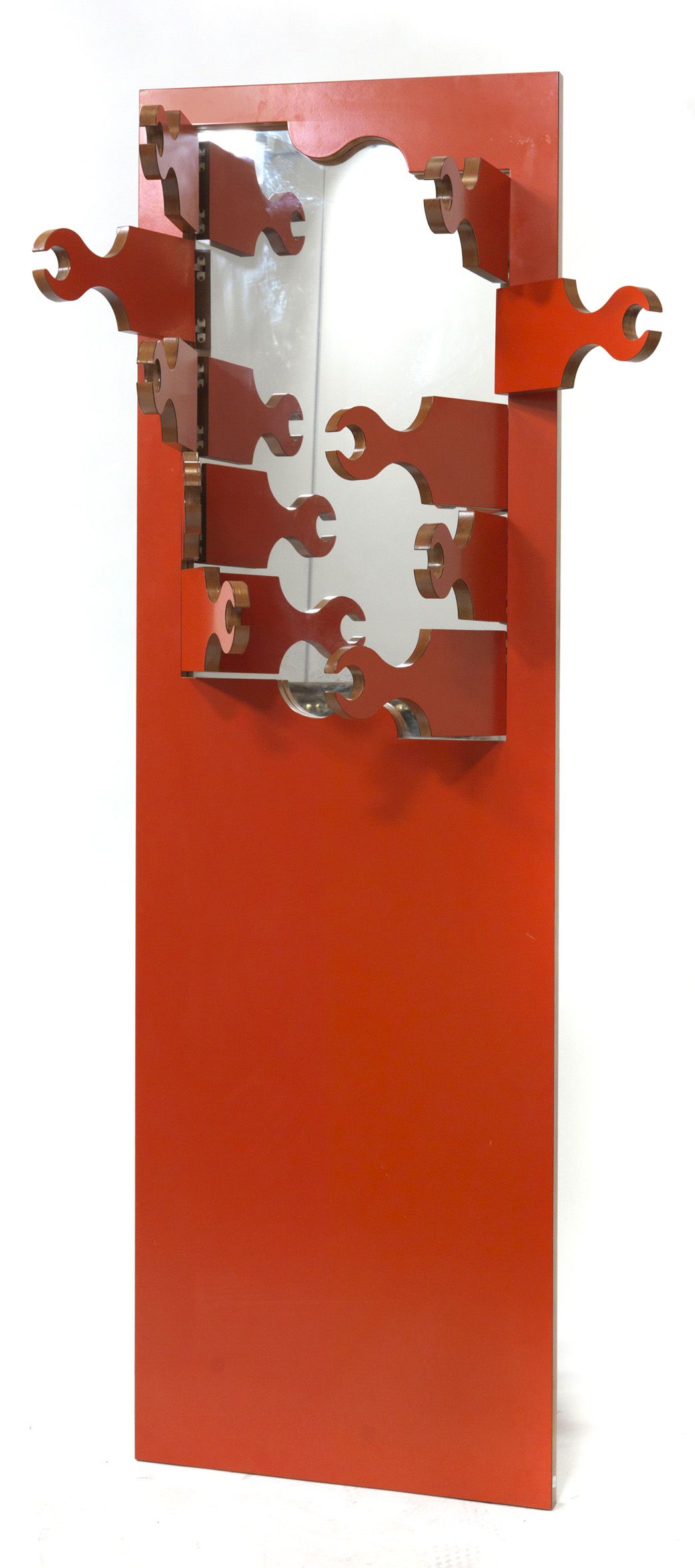 ANONIMA DESIGN (JARETTI, LUZI, PRANDI, RICCATO,VIRANO) Scorpion Appendiabiti in legno multistrato rivestito in laminato rosso. Prod. Bonetto 1972. cm. 187x60 Bibl.: "Design per Abitare arredi di architetti torinesi", (catalogo della mostra), maneggio Chiablese della Cavallerizza Reale, ottobre 2008, Design diffusion edizioni, 2008, pag. 41.