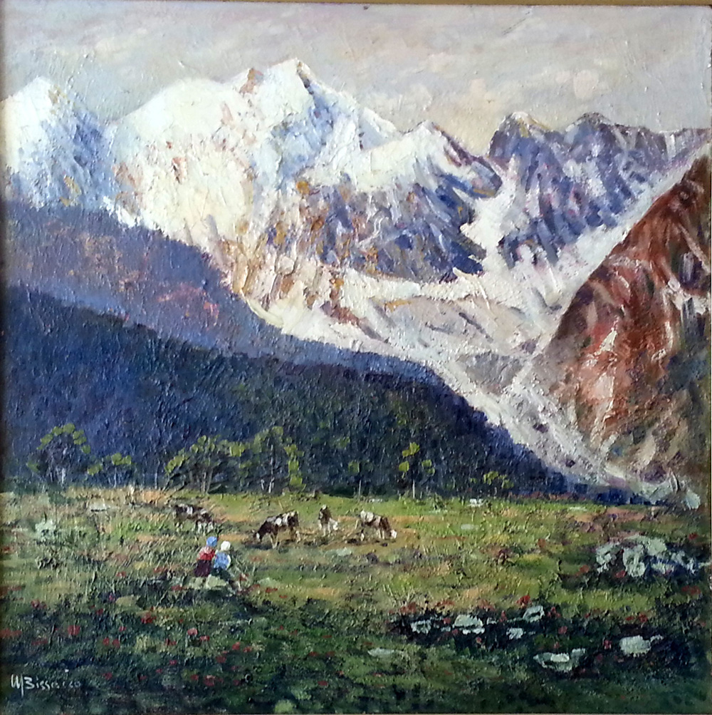 Martino Bissaco "Paesaggio alpino" - Olio su tavola - cm 60x60