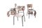DOVA GIANNI, STEFFENINO WALTER Sei sedie con sedile e schienale in laminato plastico. Tessuto Novoschantung Perliga “Arcobaleno P 496” della manifattura Jsa di Busto Arsizio. La ditta Steffenino, che aveva sede a Torino in via Pinelli, sperimentò l’ uso della resinatura fenolica termoindurente su diversi tipi di materiali. Particolare successo decorativo ebbe la serie di prodotti ottenuti con la laminazione dei tessuti della manifattura Jsa, il cui disegno era dovuto ad artisti come Fontana, Crippa, Ponti, Gaspari e appunto Gianni Dova. E’ inoltre da ricordare che il tessuto che ricopre sedili e schienali di queste sedute vinse il compasso d’oro nel 1954. cm 81x39x40,5 Bibl.: Per il tessuto di Gianni Dova : Centrokappa, (a cura di) Il design italiano degli anni ’50, Ricerche design editrice, 1985.pag. 182. Per la ditta Steffenino: E.Biffi Gentili ( a cura di) Eccentricity, Arti applicate a Torino 1945-1968. Fondazione per il libro, la musica e la cultura, pag. 260.
