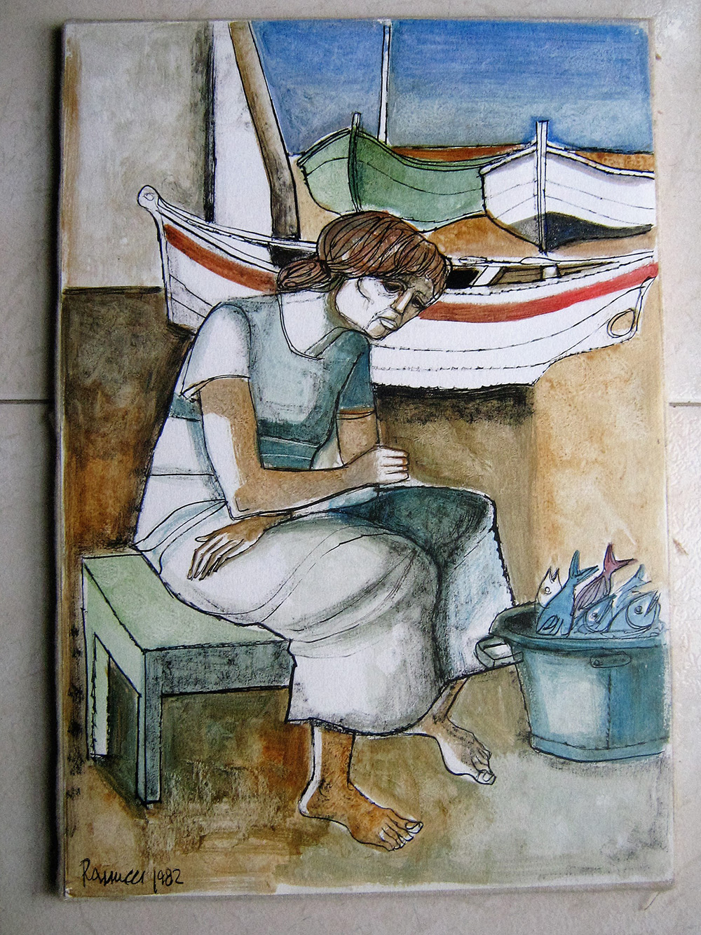 Lucio Ranucci "La moglie del pescatore" 1982 - Tecnica mista su cartoncino...