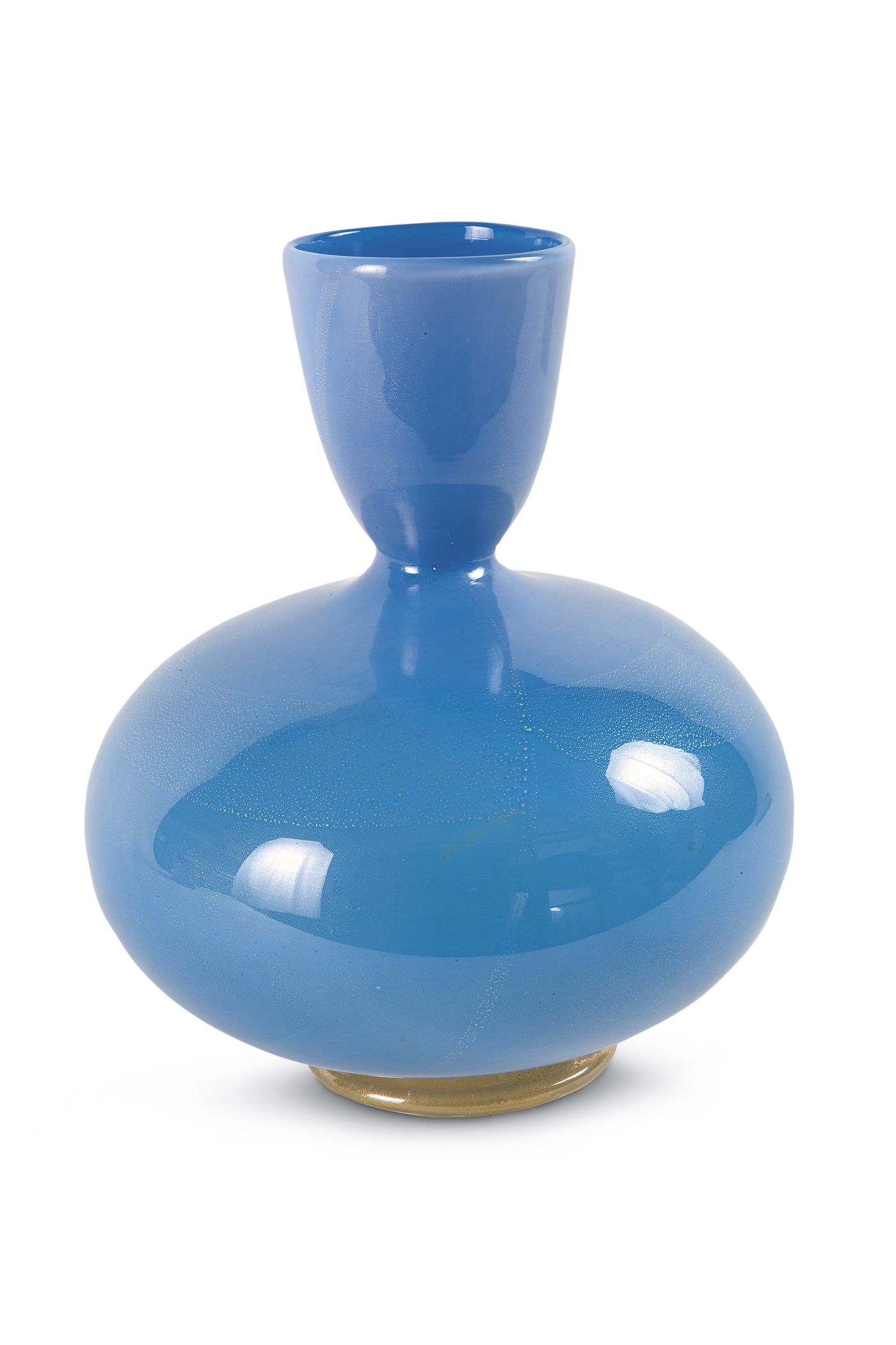 SEGUSO - Vaso in vetro incamiciato azzurro. Inclusioni a foglia d'oro. Base...
