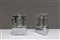 FIDENZA VETRARIA Coppia di lampade da tavolo in vetro massello e metallo cromato, prod. Fidenza Vetraria, anni 70. -. Cm 13,00 x 19,00 x 13,00.