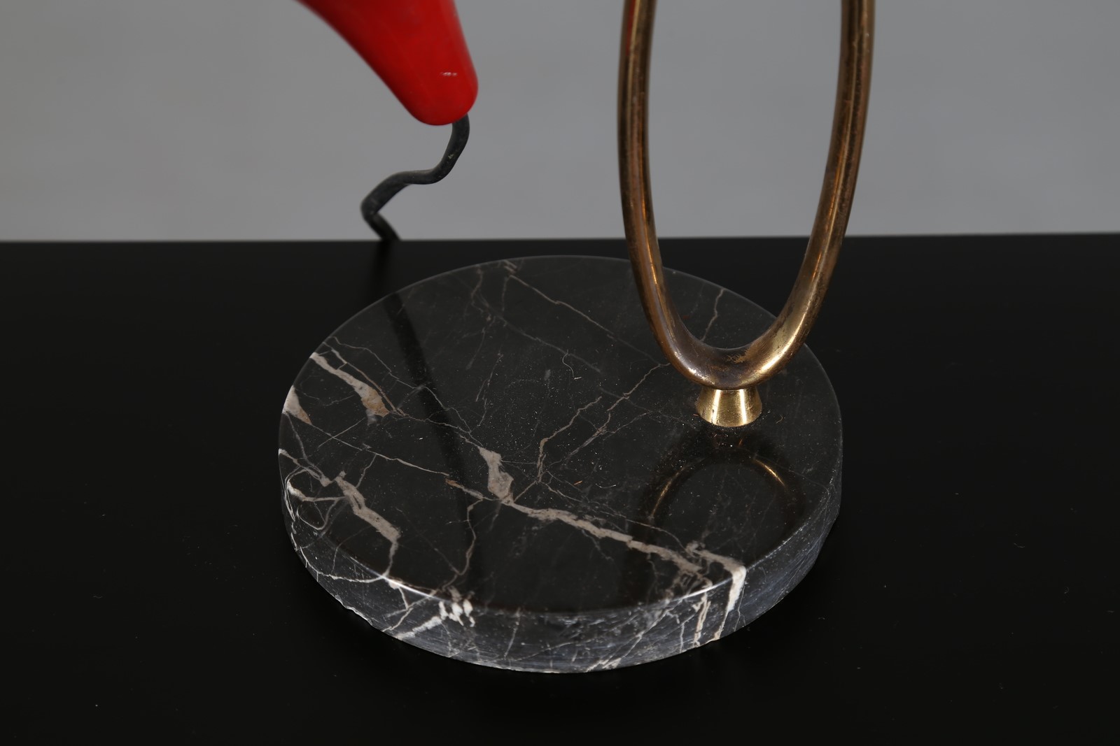 GILARDI & BARZAGHI Attrib. Lampada da tavolo in ottone metallo laccato con base in marmo, anni 50. -. Cm 35,00 x 39,00 x 35,00.