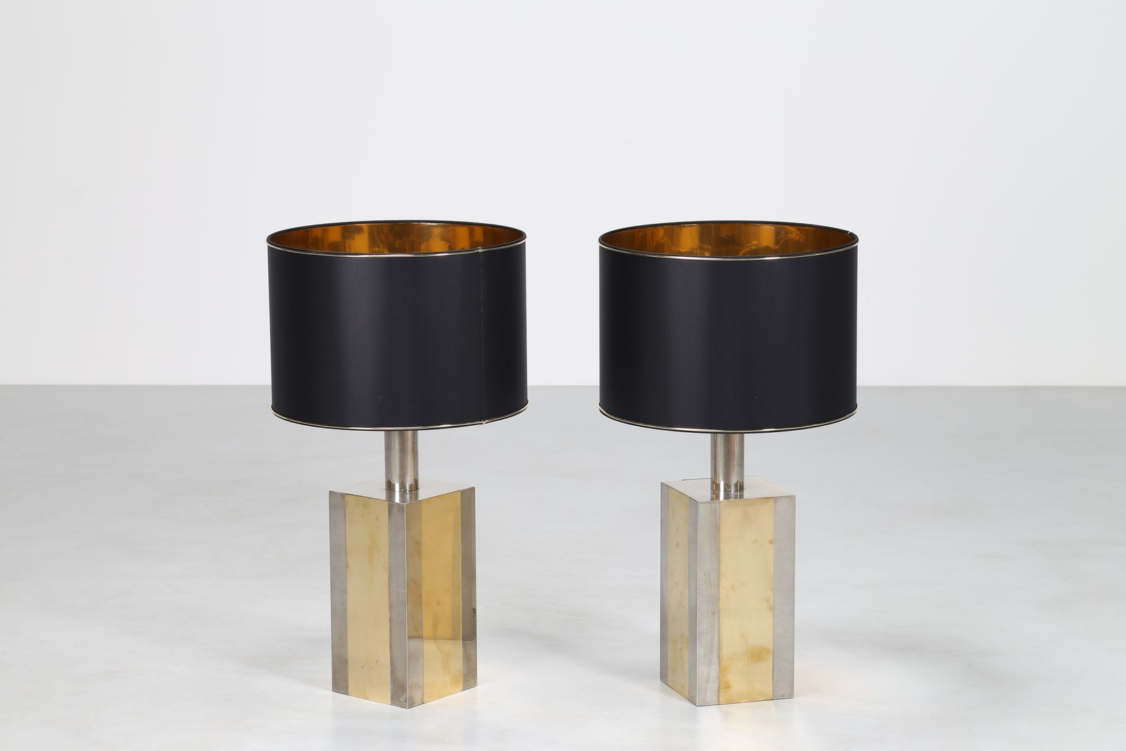 MANIFATTURA ITALIANA Lampade da tavolo in ottone e acciaio prod. Romana anni...