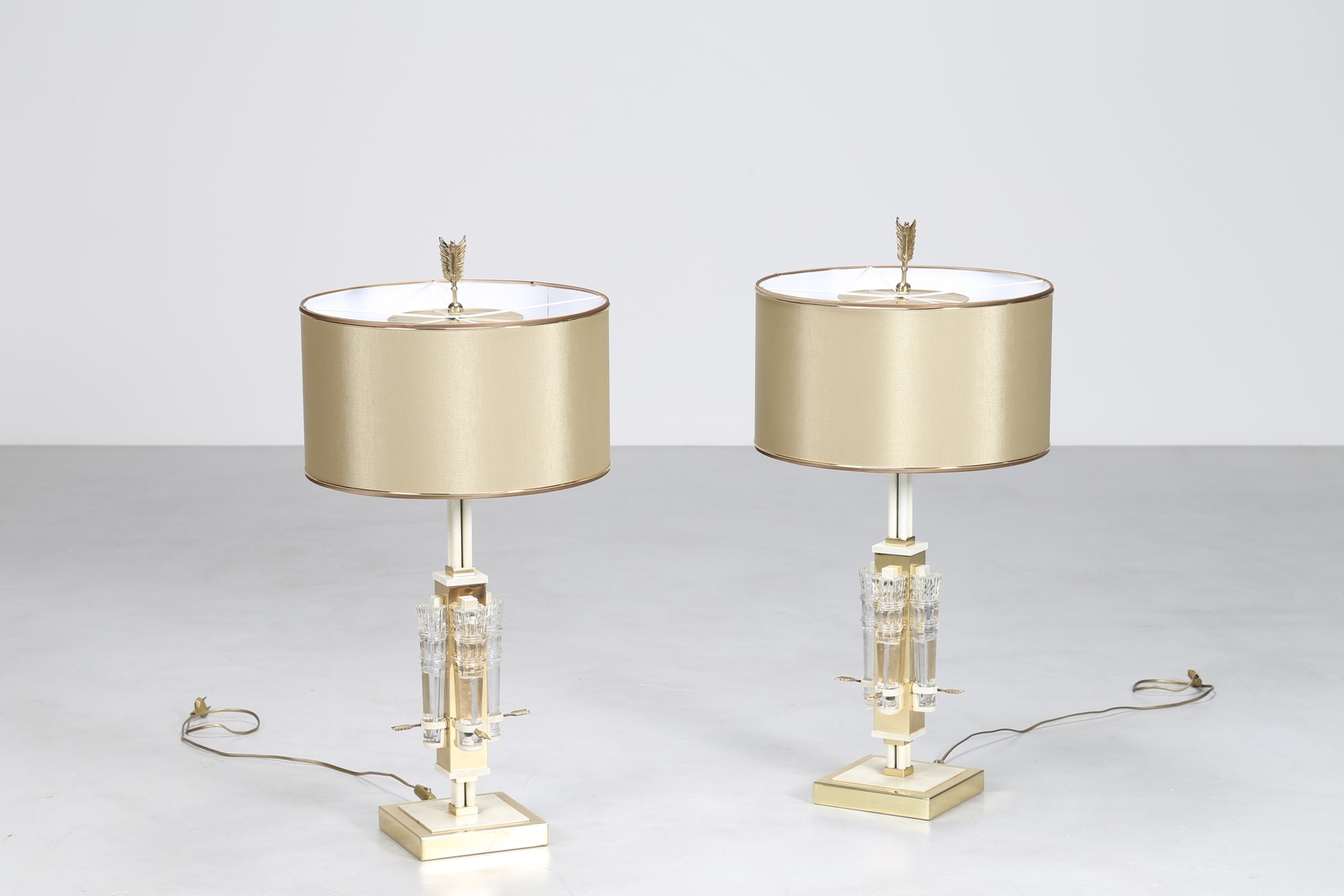 BANCI GIOVANNI Coppia lampade da tavolo in ottone, vetro e metallo laccato...