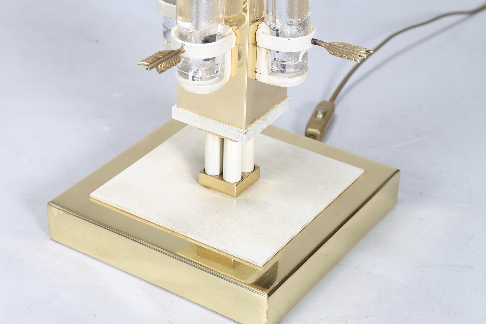 BANCI GIOVANNI Coppia lampade da tavolo in ottone, vetro e metallo laccato mod. Faretra, Firenze anni 70. -. Cm 45,50 x 90,00 x 45,50.