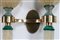 ARBUS ANDRÉ Coppia di applique in bronzo dorato e vetro corroso a foglia oro, vetro satinato bianco, con anelli di vetro verde smeraldo, Per Veronese, Francia anni 50. . -. Cm 28,00 x 40,00 x 14,00.