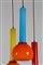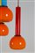 STILNOVO Lampada a sospensione in ottone e metallo a tre lumi in vetro incamiciato, anni 50. -. Cm 43,00 x 127,00 x 43,00.