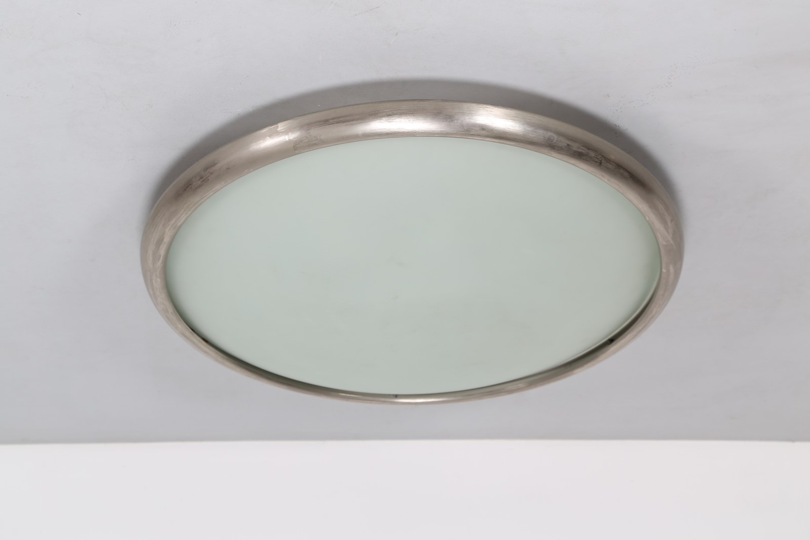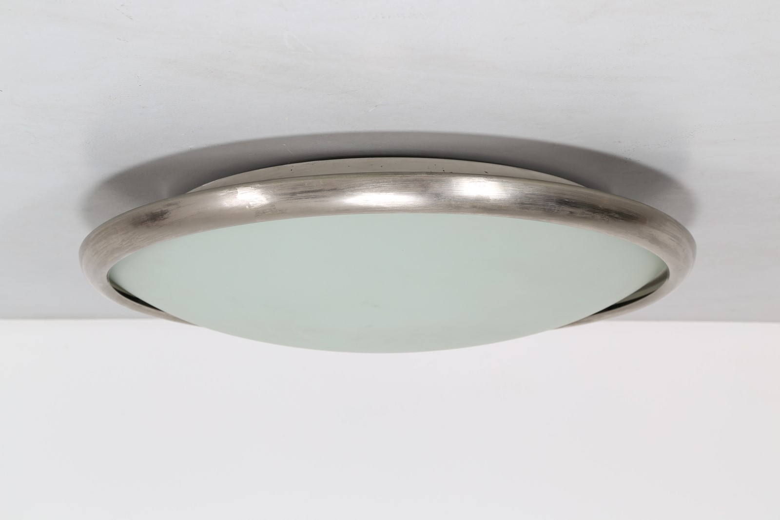 FONTANA ARTE Plafoniera in ottone nichelato e vetro satinato, mod. 1447, per...