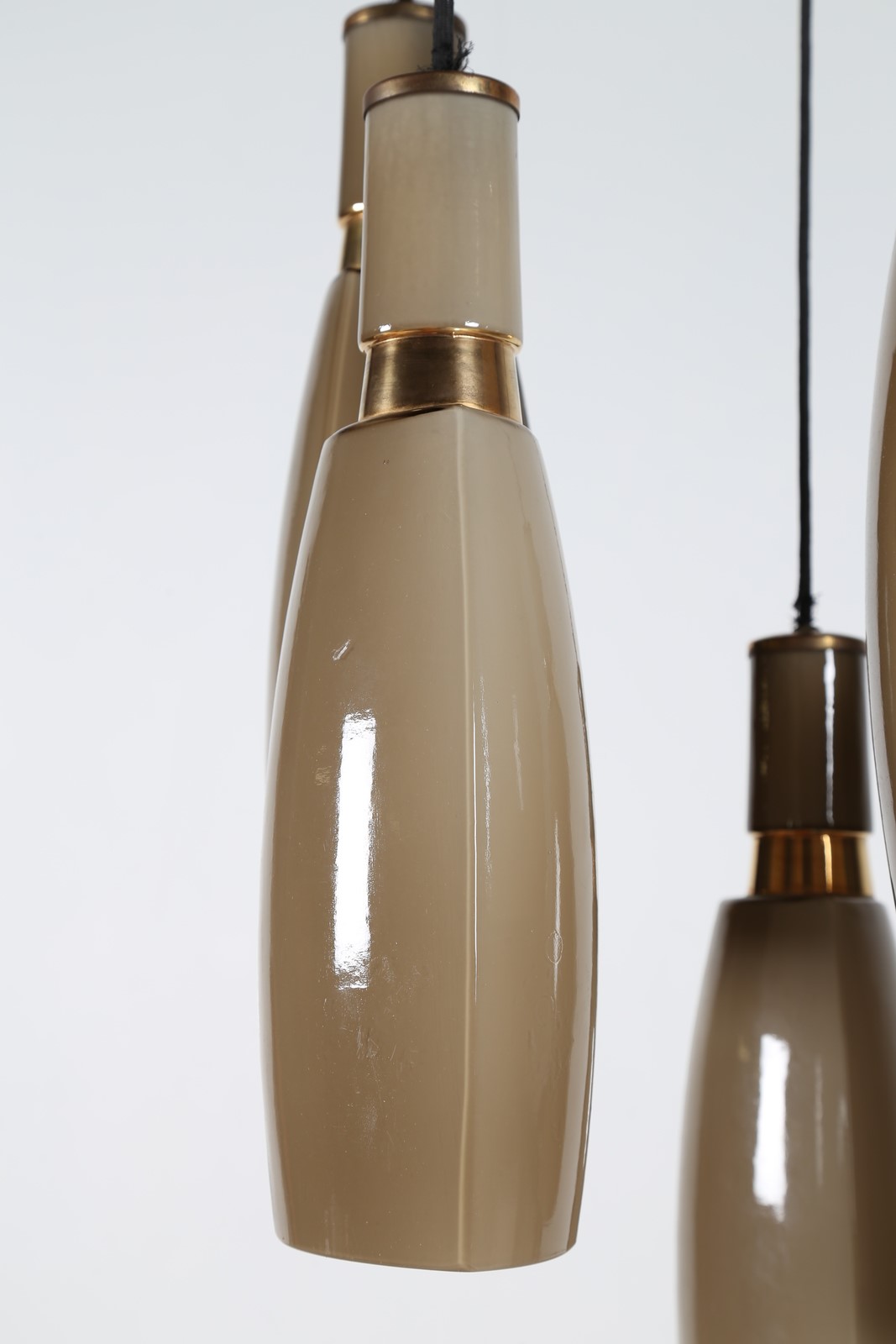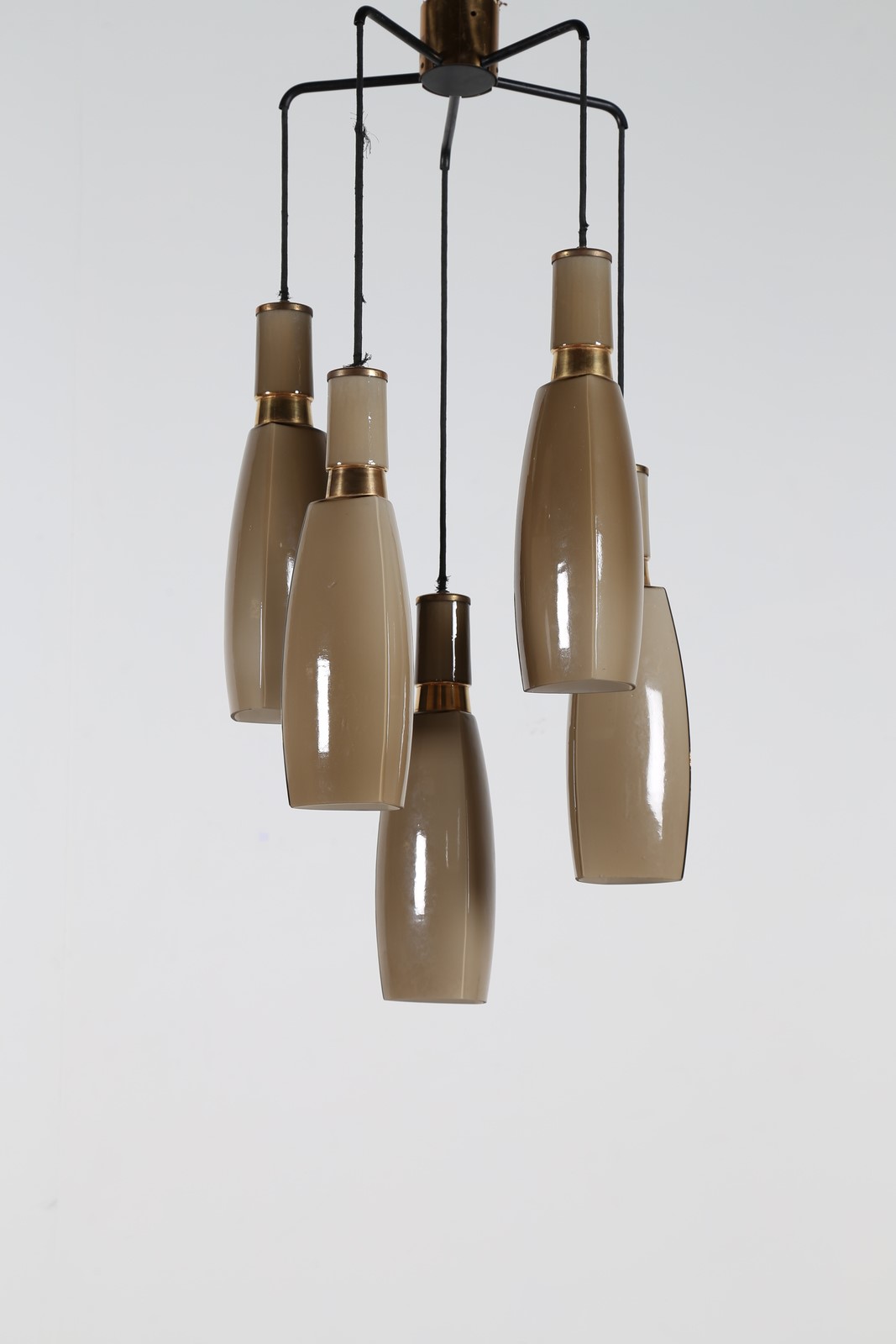 STILNOVO Lampada a sospensione in ottone e vetro incamiciato, anni 60. -. Cm...