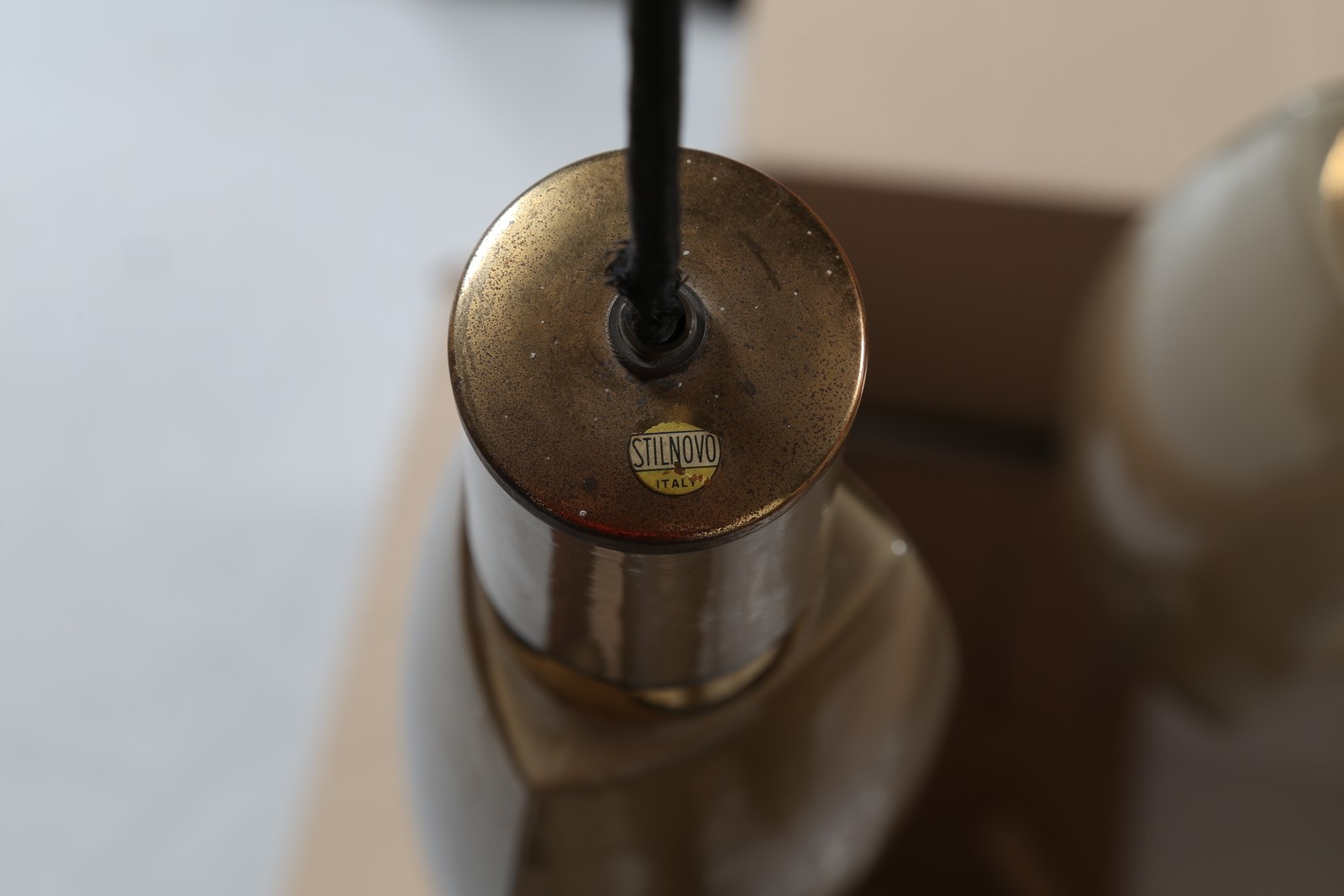 STILNOVO Lampada a sospensione in ottone e vetro incamiciato, anni 60. -. Cm 42,00 x 80,00 x 42,00. Etichetta presente