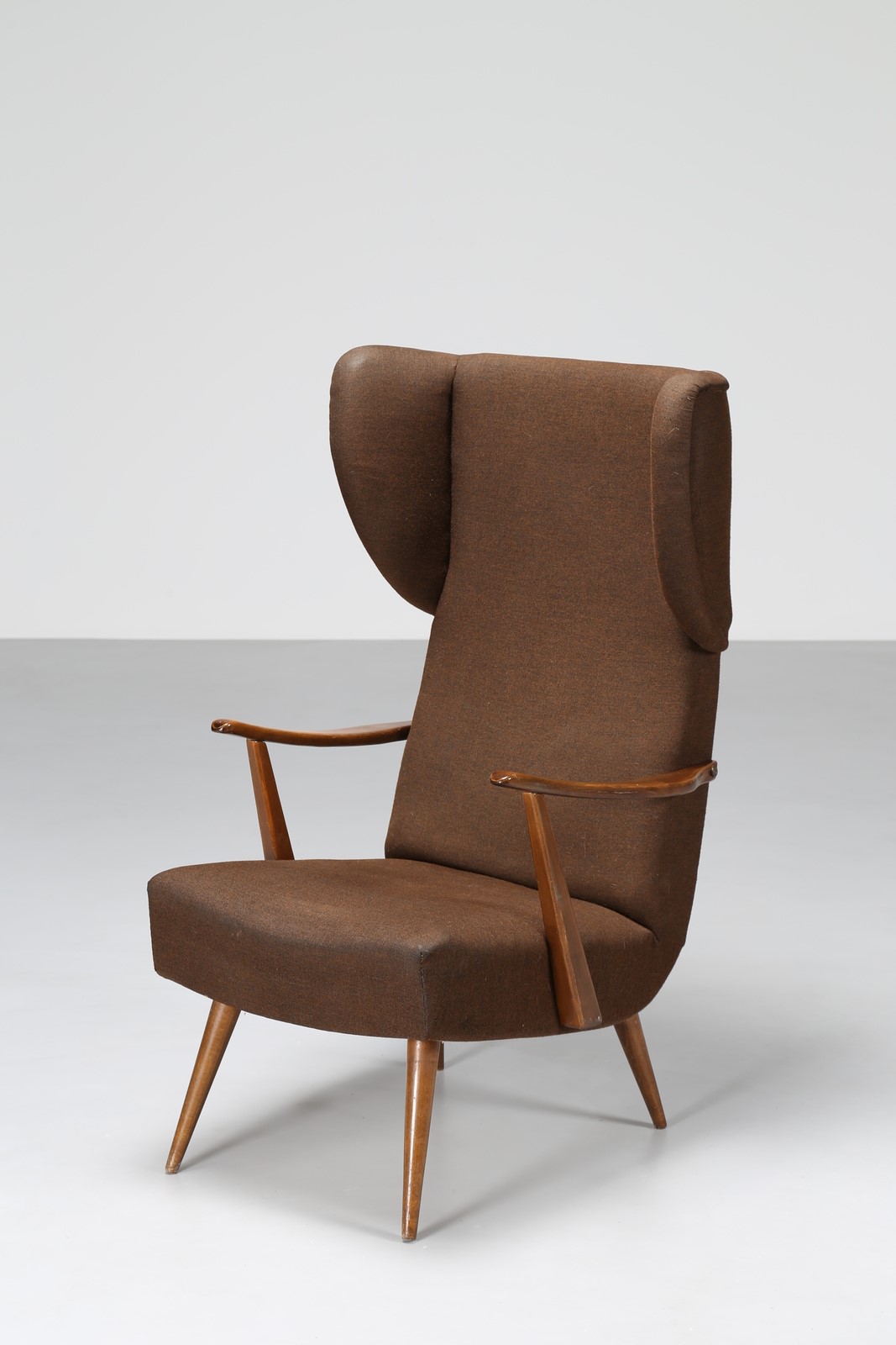 MADSEN e SCHUBELL Attrib. Poltrona in legno e tessuto, anni 50. Legno e...