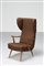 MADSEN e SCHUBELL Attrib. Poltrona in legno e tessuto, anni 50. Legno e tessuto. Cm 90,00 x 113,00 x 70,00.