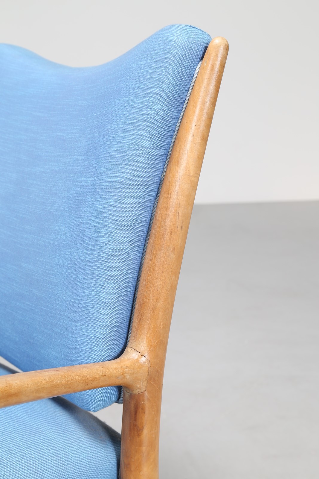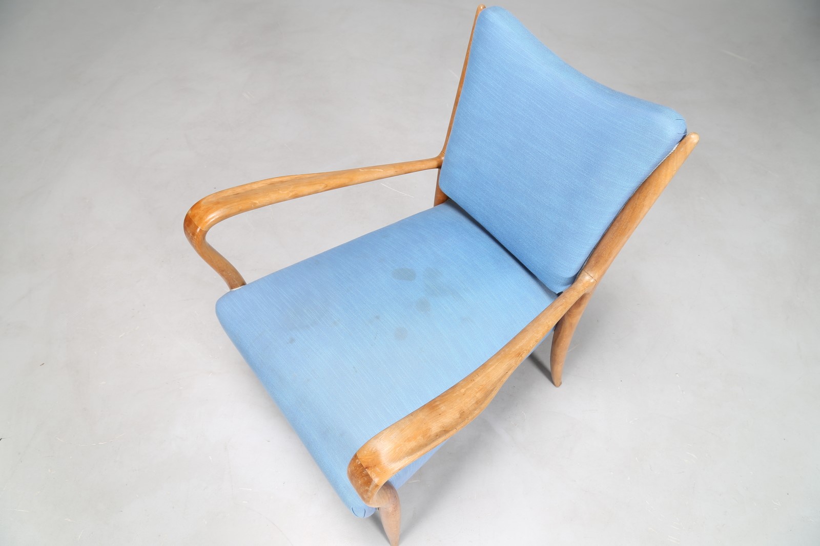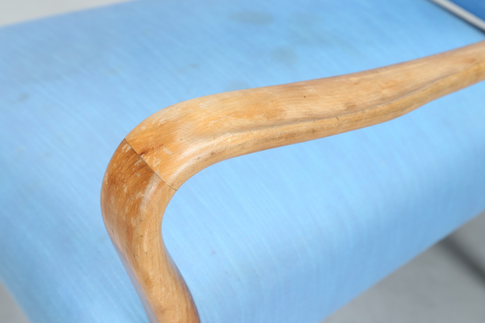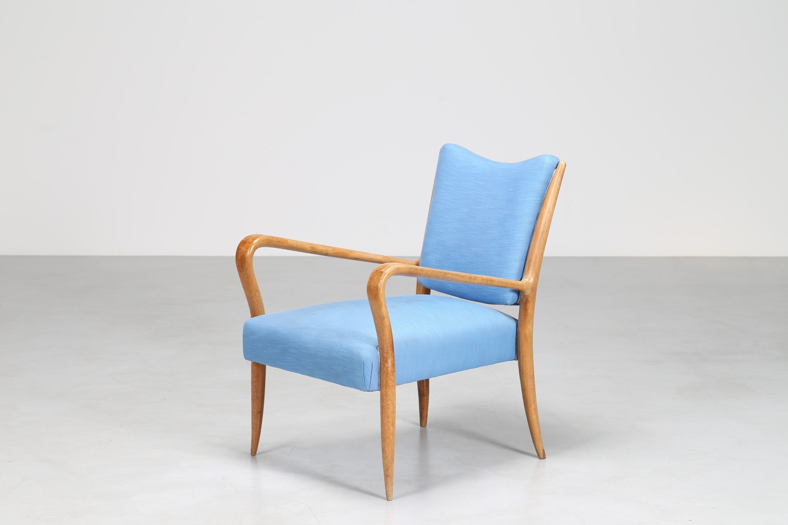SCREMIN LUIGI (1896 - 1983) Poltroncina in legno e tessuto, anni 50. -. Cm...