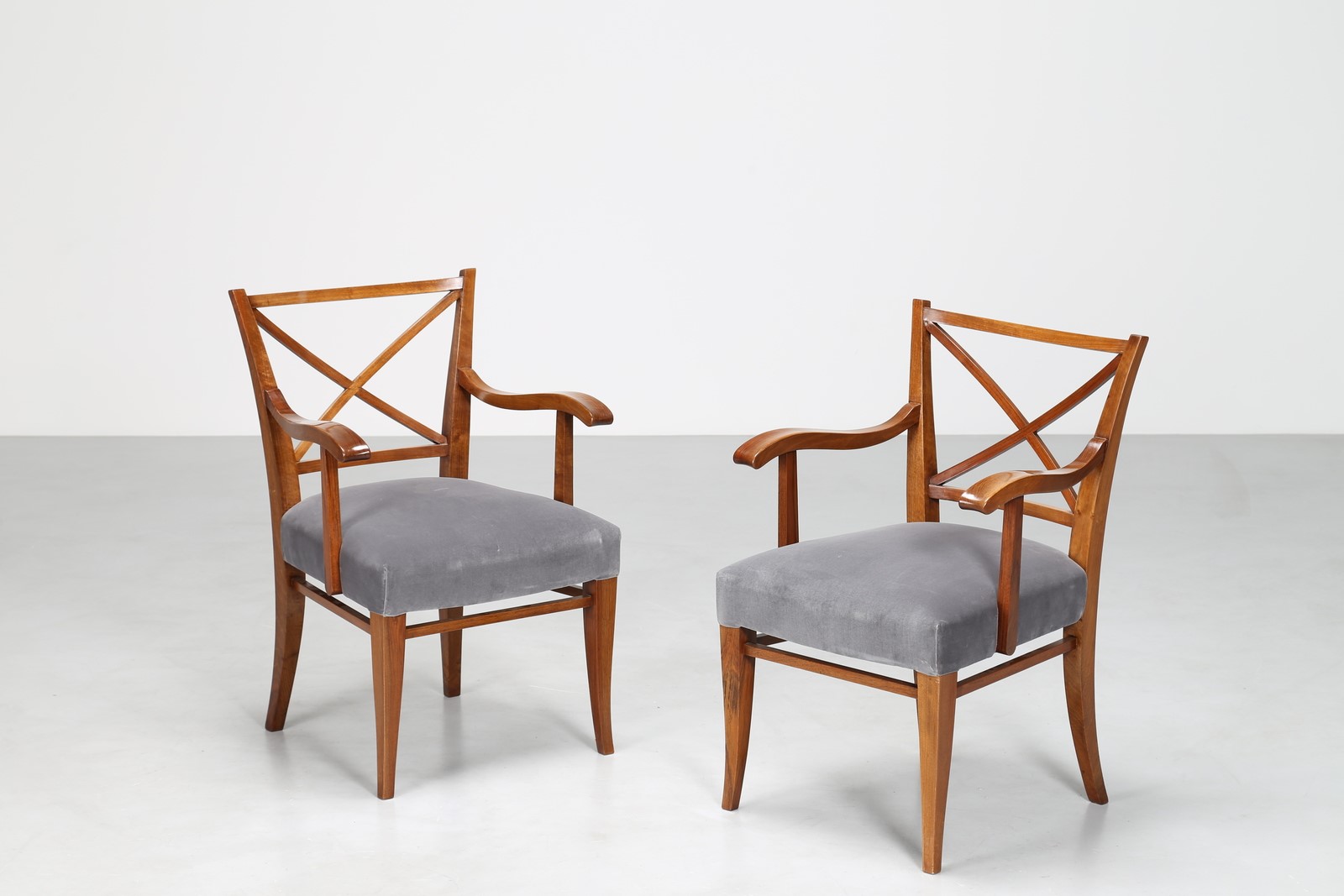 TEMPESTINI MAURIZIO (1908 - 1960) Coppia di poltrone in noce nazionale e...