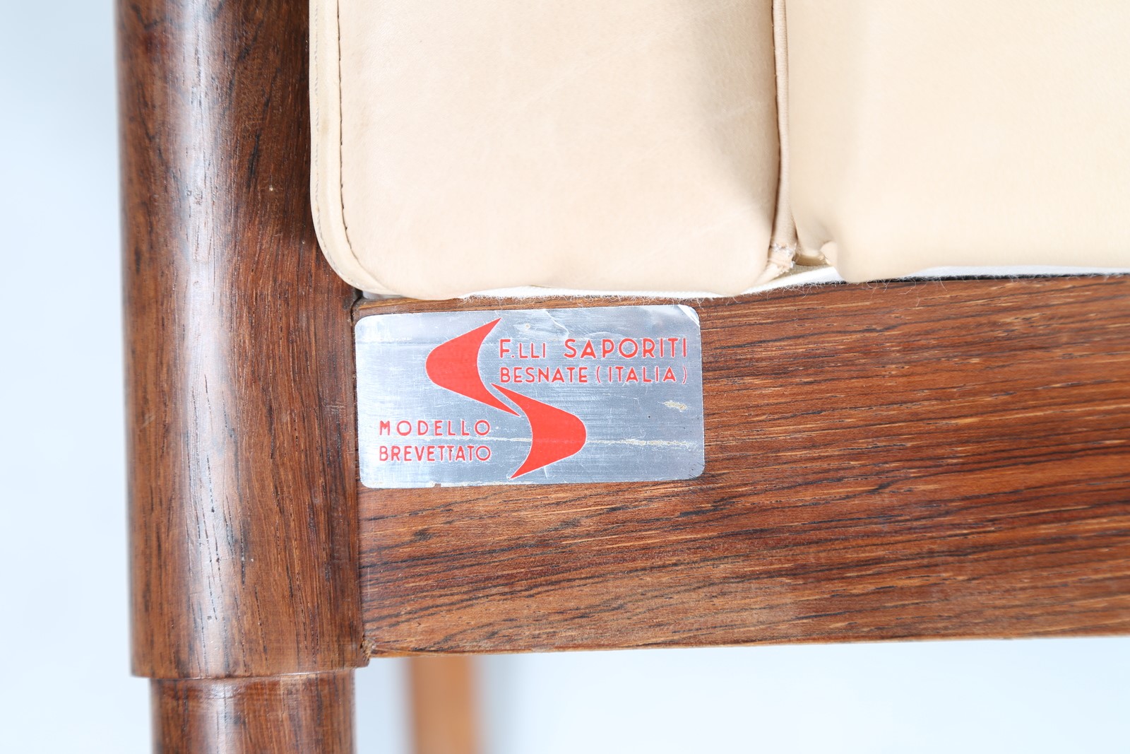 SAPORITI SERGIO Coppia di poltrone in palissandro rivestite in pelle, mod...